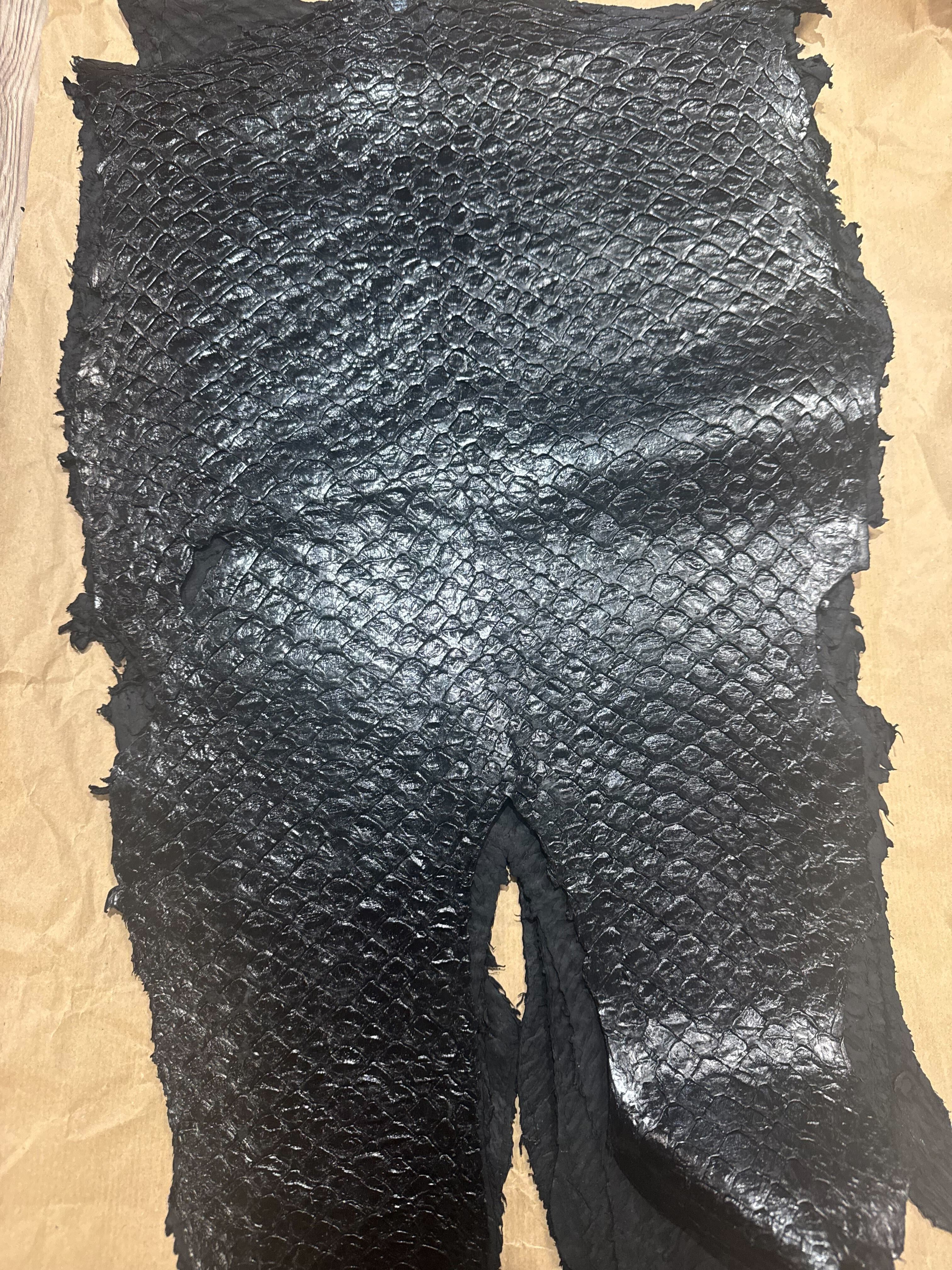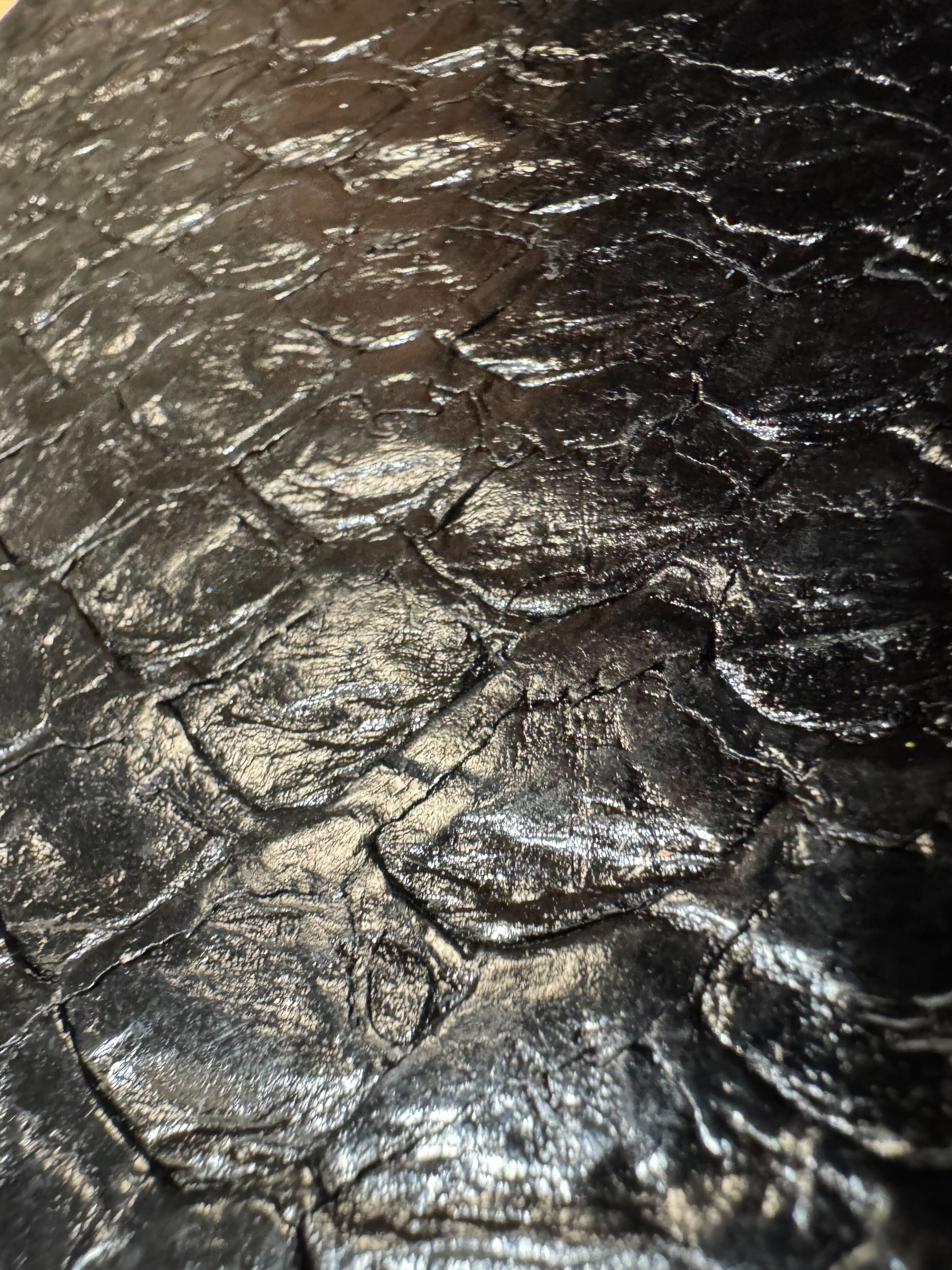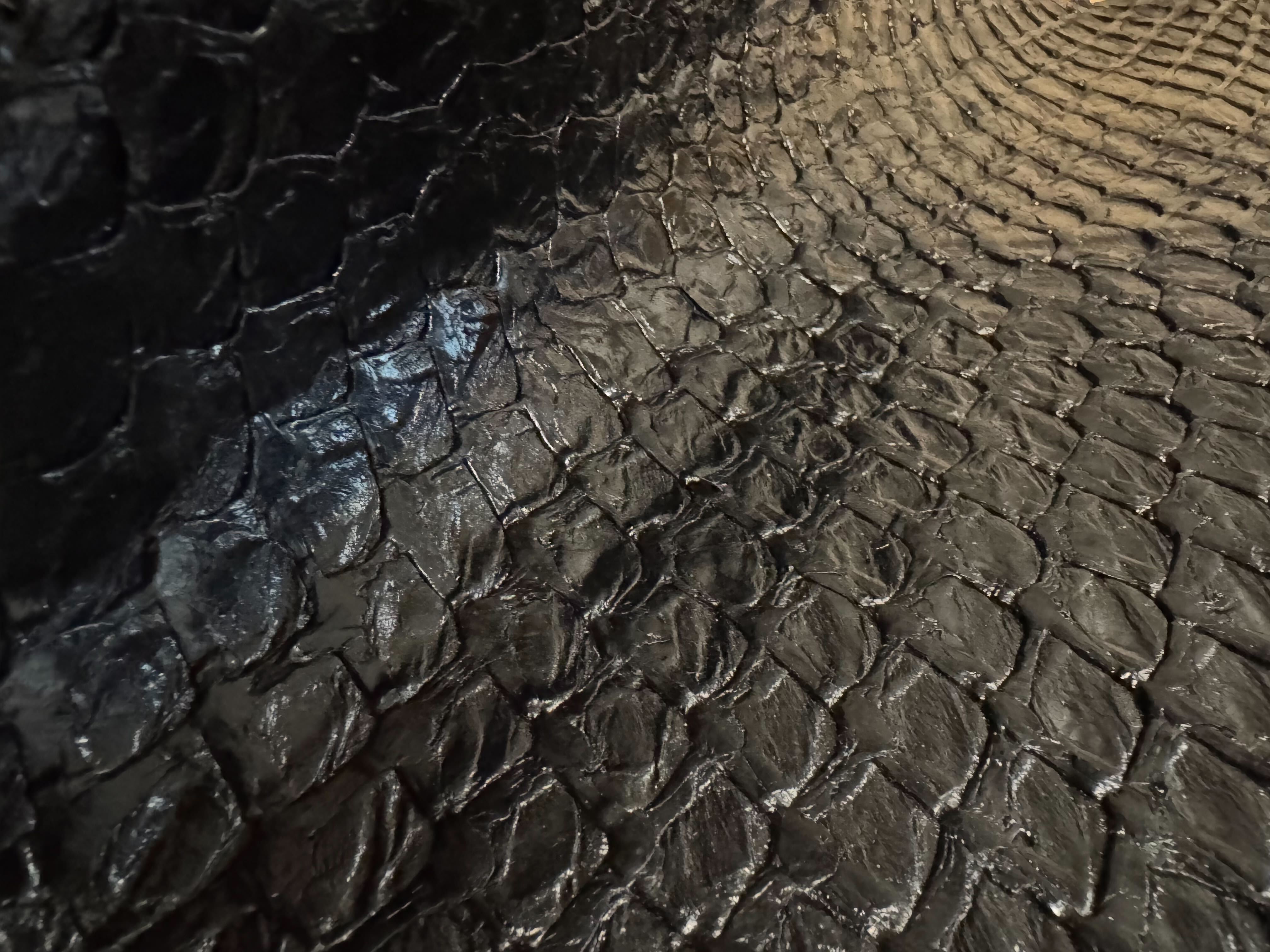 Le cuir d’arapaima, est une matière singulière, issue exclusivement d’élevages européens destinés à l’alimentation, et non de captures sauvages. Sa texture naturellement organisée en larges écailles et son toucher à la fois ferme et souple révèlent un caractère unique, alliant force et élégance. Résistant et raffiné, le cuir d’arapaima offre des surfaces plus importantes que d'autres cuirs marins.